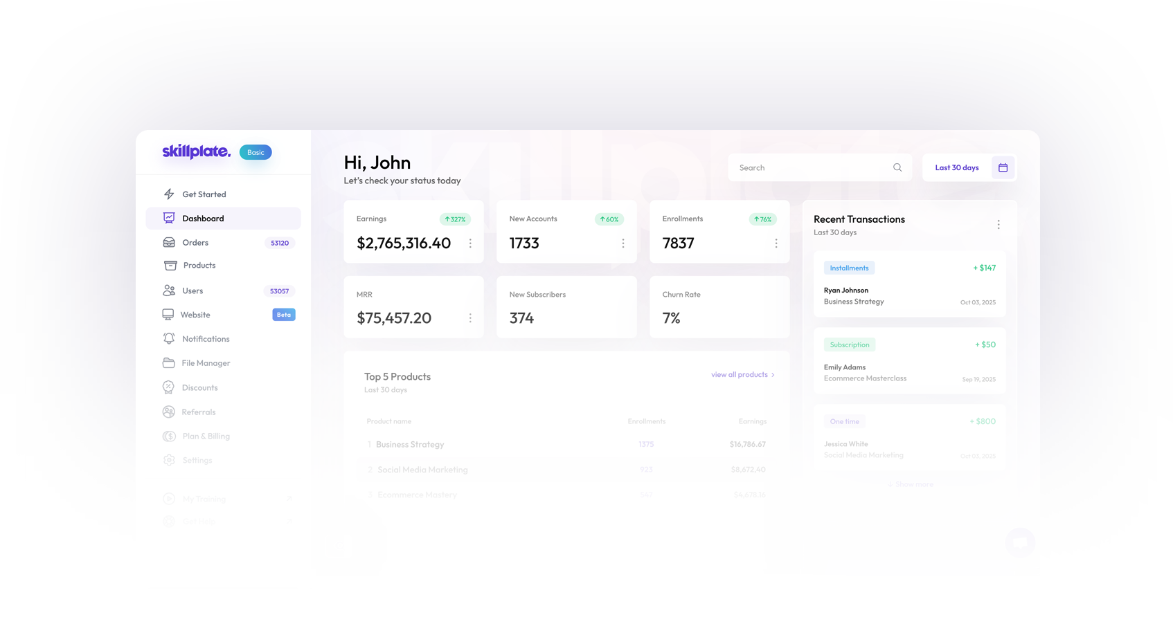 Skillplate ти позволява да започнеш да продаваш дигитални продукти като курсове, абонаменти и общности за по-малко от 3 часа.